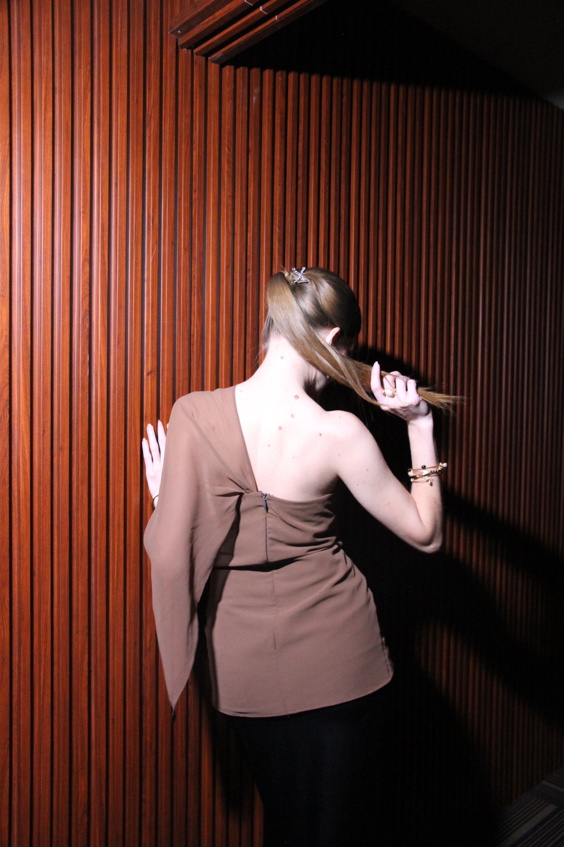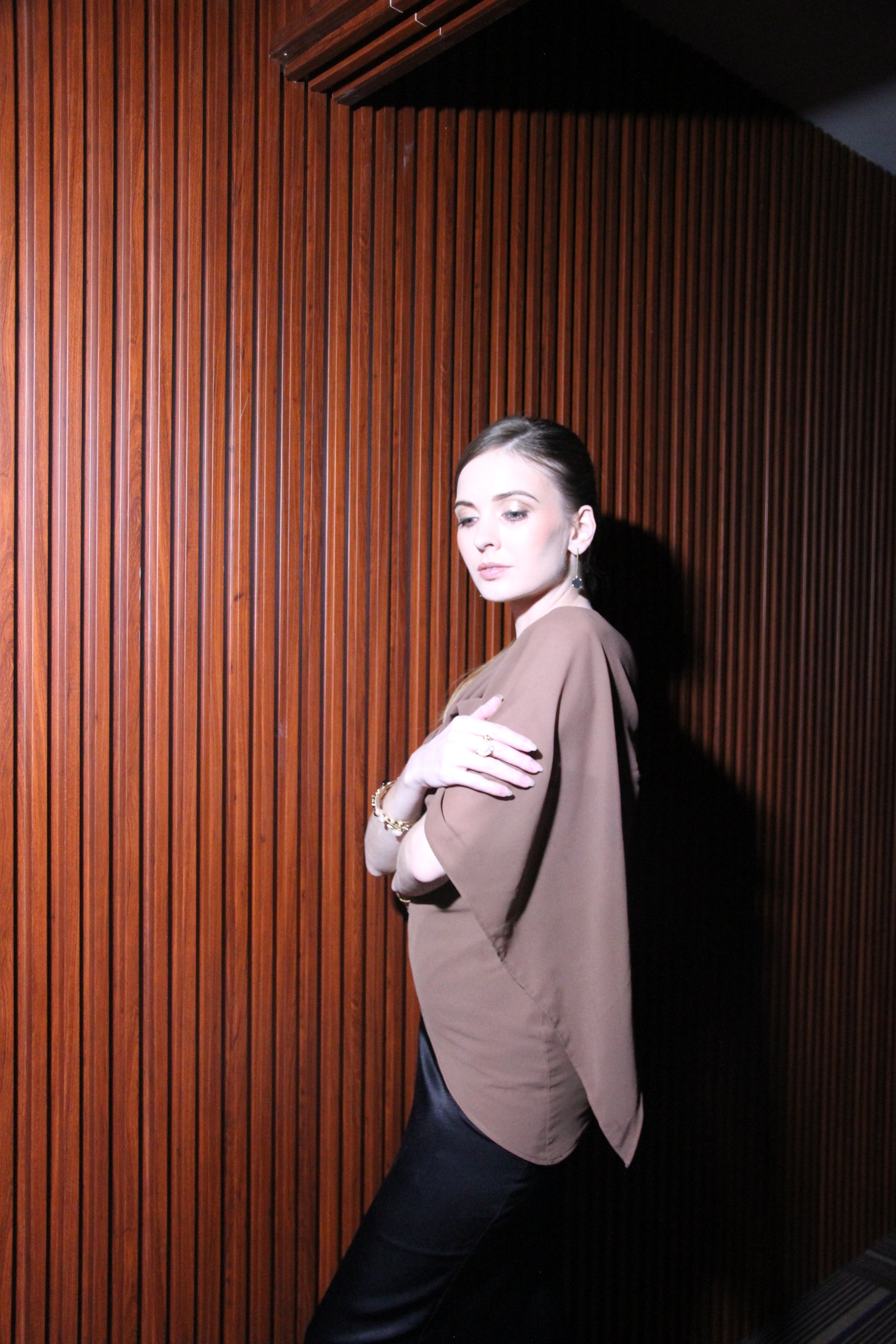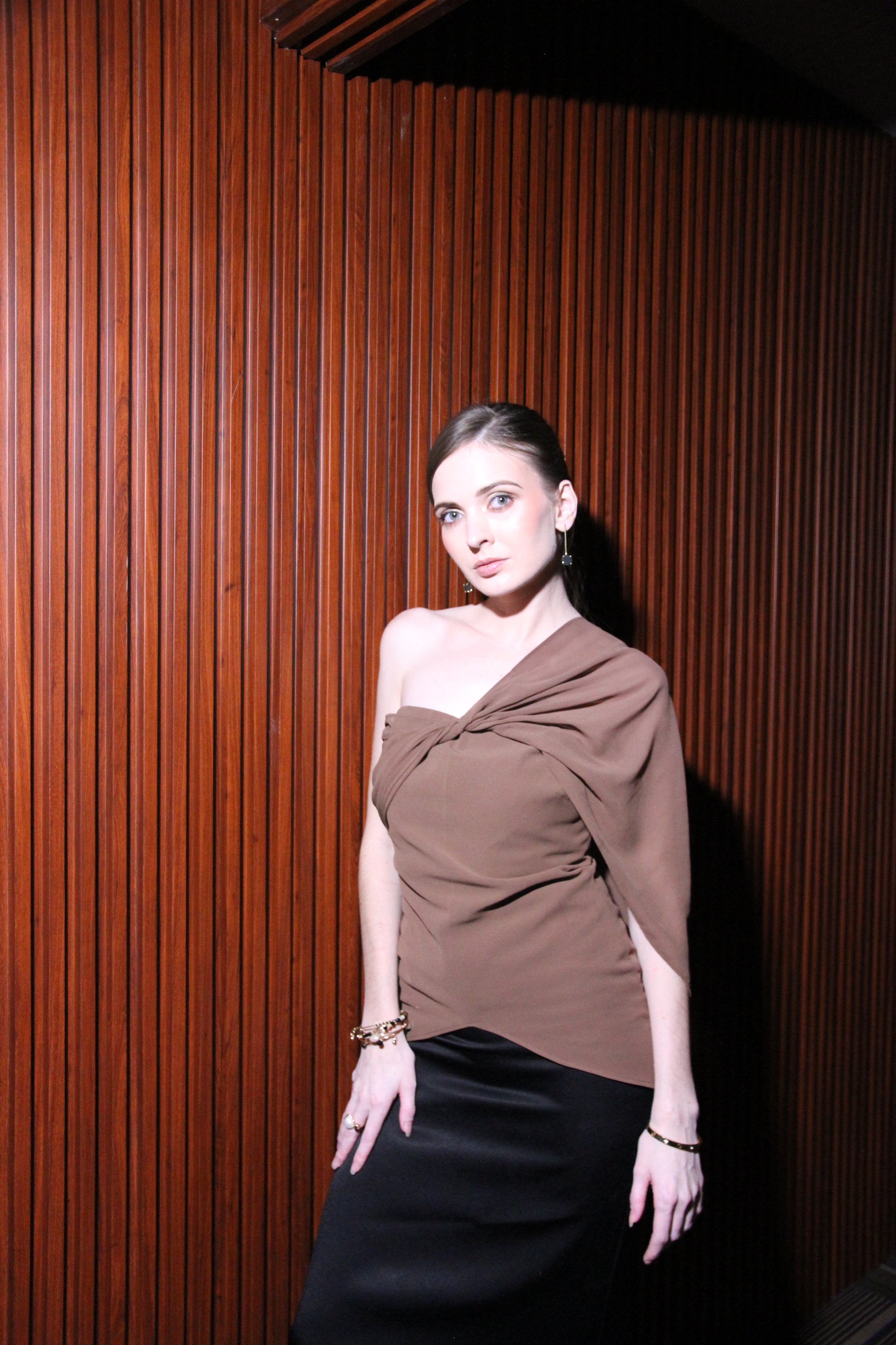 The Cascade Top is designed for women who want drama in the detail, not in the effort. Cut in fluid georgette and fully lined for comfort, the asymmetrical drape frames the neckline with sculptural elegance, while the pared-back silhouette ensures ease of wear. It’s that rare top that answers the question: “What can I wear that feels refined without being overdone?” Pair it with tailored trousers, a sleek skirt, or layered under outerwear — it’s a piece that transforms every look into something quietly commanding.