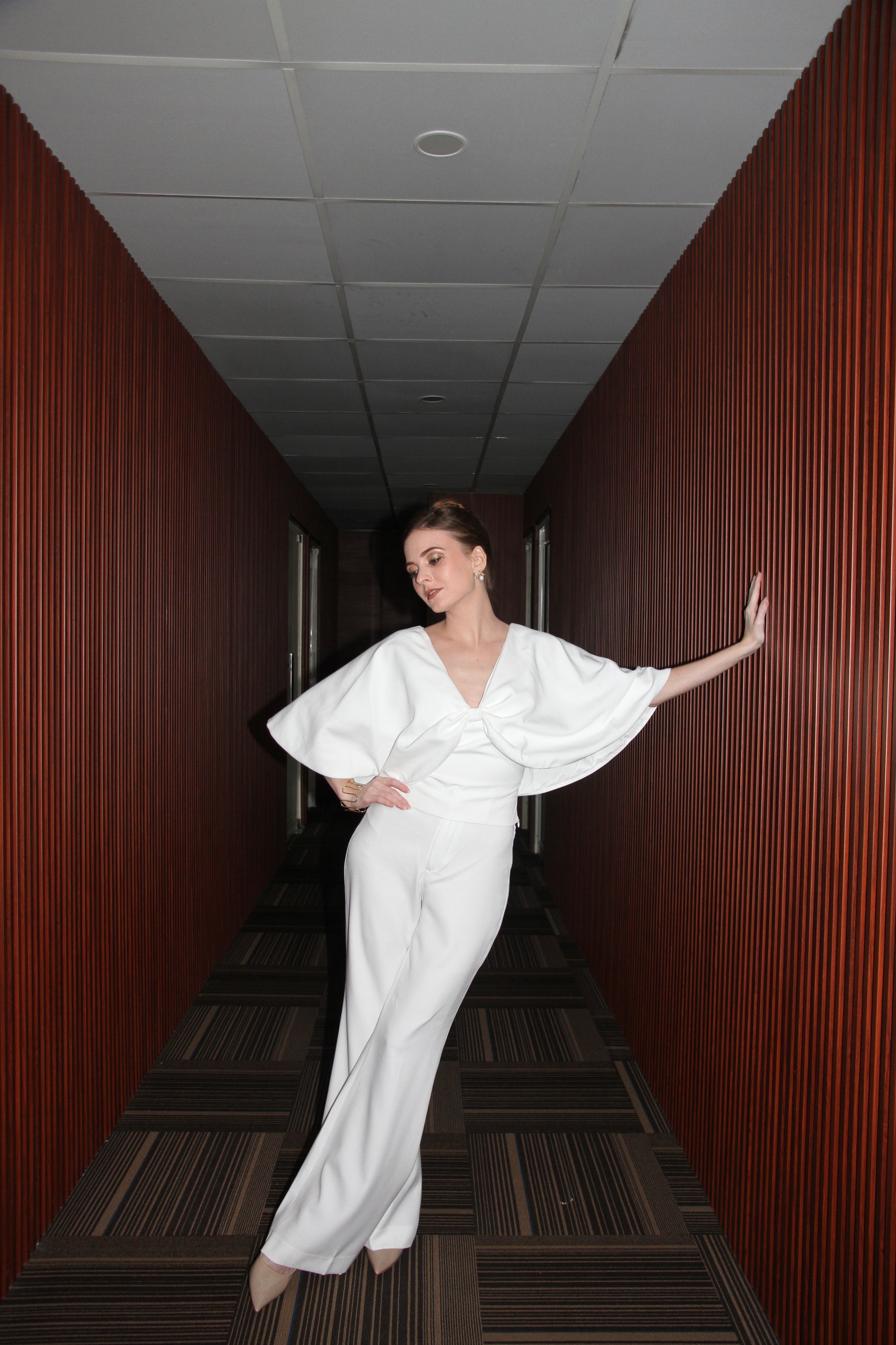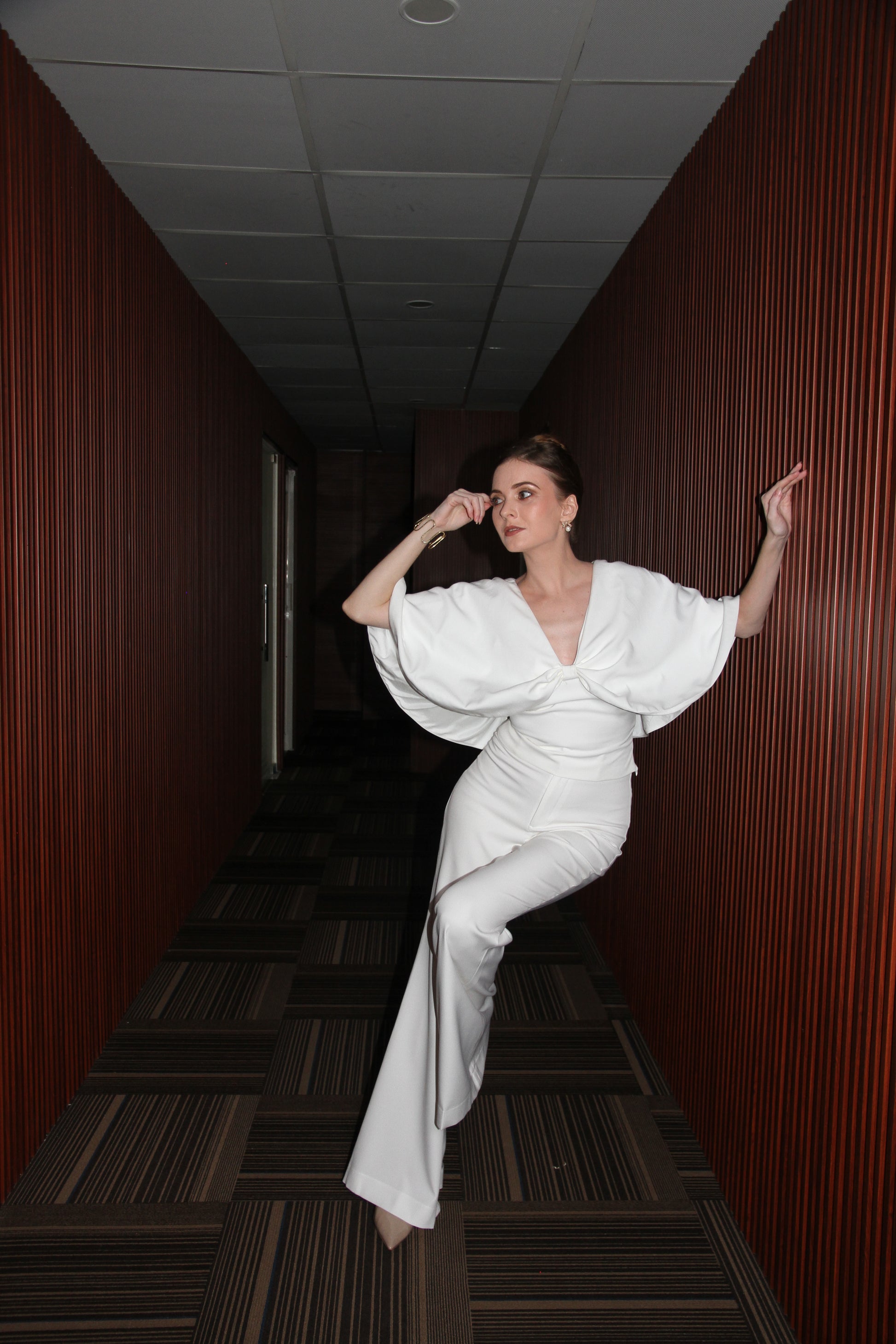 The Oyester Top is an exploration of fluid structure and quiet drama. Cut from lux banana crepe, the cape-inspired front drapes with architectural ease, anchored by a sculptural bow that frames the silhouette with subtle grandeur. It’s the answer to the question: “How do I stand out while staying understated?” Effortless to style yet unforgettable in presence, it embodies the spirit of Fluidity — modest, modern, and memorably refine